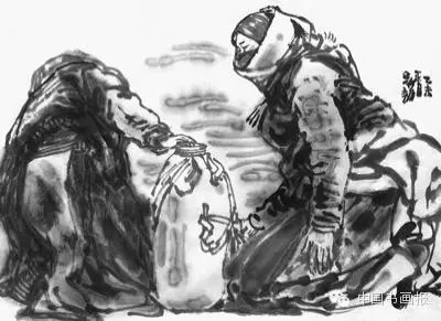 大自然的奇妙在于它本身的和谐,一切生物都在各自的轨道上成长又与其他生命相互依存,共同呈现自然之美的大道。高高的蓝天远远的山,缕缕的白云纯纯的情,草原沉睡着,藏民在沉睡的草原上开始了他们的生活。穿透雪山传入你耳鼓的歌声,洗涤着你心中的阴霾,放眼望去,两个藏民正蹲在一滩河水边畅快地说笑着,一勺一勺把水灌进一个大塑料桶里。这甜美的感受,在人烟稀少的枯干的草地上显得格外生动可贵,此景此情让我产生一种特别美妙的冲动,我的手情不自禁地在比划着两人形态间衣纹的变化。她们有节奏地重复着同一个动作,往塑料桶中舀水,在微微的笑语中装满了水,然后坐在草地上凝望着远方,安静得使周遭的空间更显得广阔无际。我的情感和手的比划也跟随着眼前的场景安静下来,在这无言的水墨画里独享其乐。