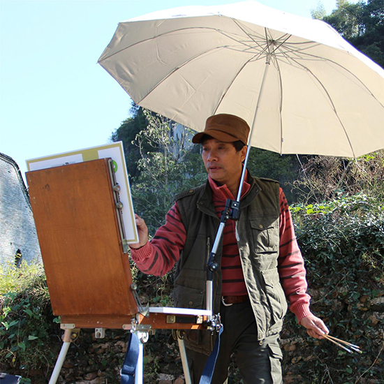 欧日东是一个精力充沛的画家,猛一见以为他是美院一般的好学的研究生,殊不知这竟是一个作品能入选全国美展12次的画家,极为难得。了解他的人会发现他有极大的艺术潜力,尤其在画巨幅油画上,深厚的水彩功底会使他的油画有极大的驰骋天地。