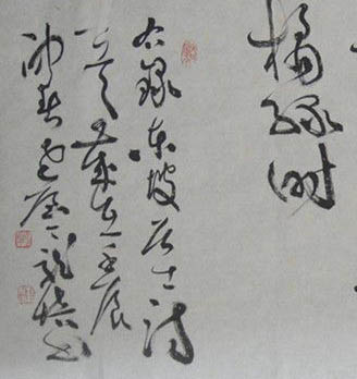 想必龙培先生激情创作至忘我境地,可能未及时右移纸张或未能及时左移身体,以致最后一行重心偏右。贵在他题款用了三行,意在调正了整幅作品的重心,这正是一个书家功底与才华之体现,也书法美学、书法诱人之处。