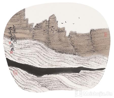 康杰的作品,正如其人,温和质朴,内秀勤谨。我想,他的内心一定非常虚静平和,不然不会营造出作品中的意境来。他的山水画作品属于粗眼一看,似乎貌不惊人,细看却有品位、有意境,能够让人在生存竞争日趋激烈的今天,有一种静下心来的从容和优雅。