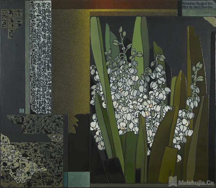 观众在展览中既能看到历史悠久的传统漆画手法,如研磨彩绘、蛋壳绘等,也能欣赏到陈恩深对材料和手法的大胆尝试。其创作历程从早年注重画面形象的形式美与构成感,逐渐转变为近年来画面形象更具流动性与朦胧感,手法运用愈发随性。