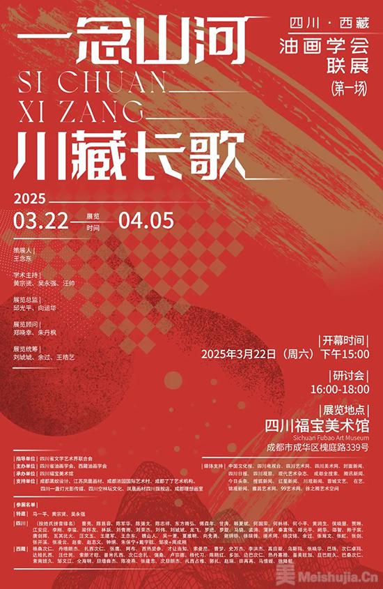 2025年3月22日,由四川省油画学会与西藏油画学会联合主办的“一念山河·川藏长歌”——四川、西藏油画学会作品联展(第一场)将于四川福宝美术馆盛大开幕。这场跨越山川与地域的艺术对话,将展出川藏两地108位艺术家的122件油画力作,以当代的笔触续写新艺术茶马古道的文化长歌。