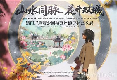 “澳门卢廉若公园与苏州狮子林艺术展”近日在江苏苏州古典园林狮子林开展。展览以“山水同脉 花开双城”为主题,借花木艺术搭建文化纽带,展现澳门与苏州园林艺术的交融之美。