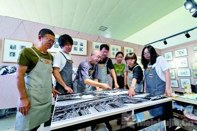 (1/5)大庆版画创作者在交流版画创作经验。李后冬摄