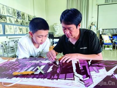 (2/5)大庆市教师发展学院美术教研员在给孩子传授版画创作技巧。王翠摄