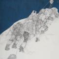 十示2018-11 120×120cm 椴木板上丙烯木刻 2018 自1988年起,我的作品都以“十示”加年份和当年创作数量的编号为题目。“十示”是什么?评论家杜曦云说:“用普世的几何图形,数理逻辑来解析:水平线、垂直线、左右各倾斜45度的线,这四条线中心对称地汇聚于一点,框定于正方形之中,成为基本元素。这可谓是最规规矩矩的图形”。的确,我的十示系列,一是由线条组成,二是都打格子,三是都画着“十”字或“米
