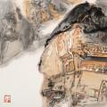 贾荣志甘肃麦积山写生 35cm×58cm 2025年 “山川草木,造化自然,此实境也。因心造境,以手运心,此虚境也。虚而为实,是在笔墨有无间。”中国画以虚实相生的哲理思辨变“自然丘壑”为“胸中丘壑”,从而贯山川之形神。这同时说明了,艺术不是单纯描绘客观情景,亦不是单纯表现主观情思,而是面对自然景观,激荡情思,“望秋云神飞扬,临春风思浩荡”,终化“胸中丘壑”为“画上丘壑”。 写生是一种